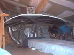 At the end of a year, following Daniel Stiennon’s advice, I built a 6 feet (2 meters) wide Gyrascope using a drill for the motor and several thin sheets of polystyrene covered with aluminum paper for the blades. It took me just a few hours to build (see the picture). And now, every evening for an hour, I do a complete session: large diameter Gyrascope with the Gyropulsar and Alternophone coupled with Mantratron set on 1/6th of a second.