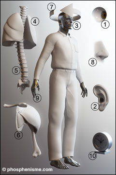 There is an equivalent of the phosphene that corresponds to all the other physical senses, adding as well the sense of balance, muscular activity, breathing, a phene related to the skeleton, and the perception of time.