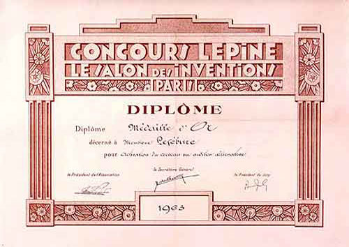 - Silver Medal at the French ‟Lépine” Contest, in 1964.