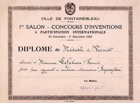 - Gold Medal and 1st Prize at the French ‟Lépine” Contest, in 1963, for his device: the Alternophone.